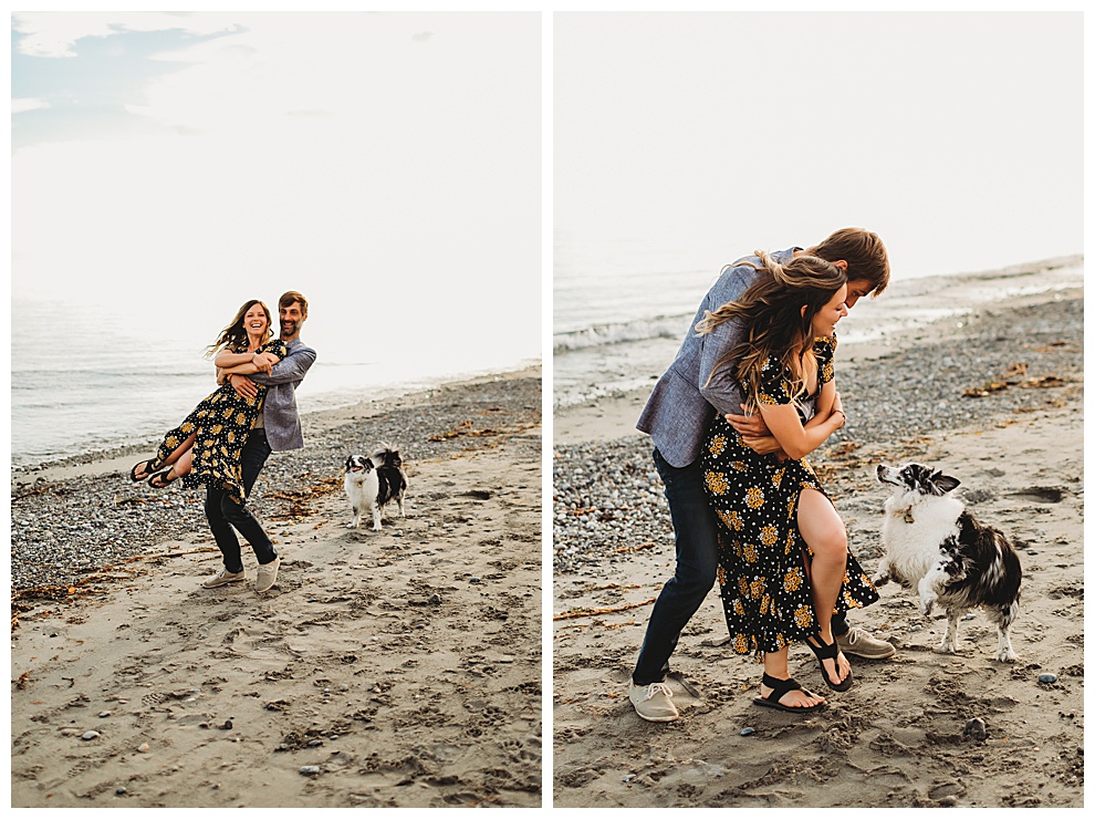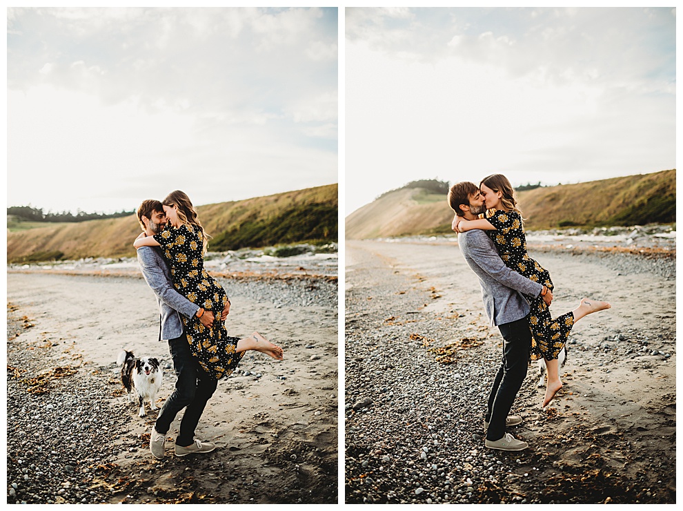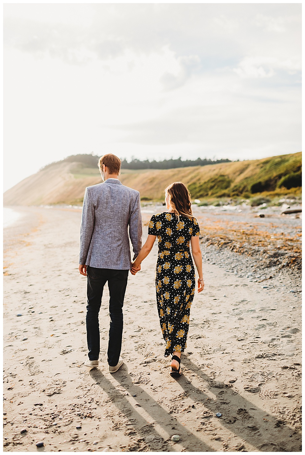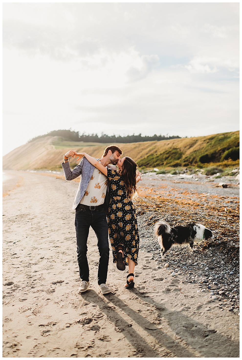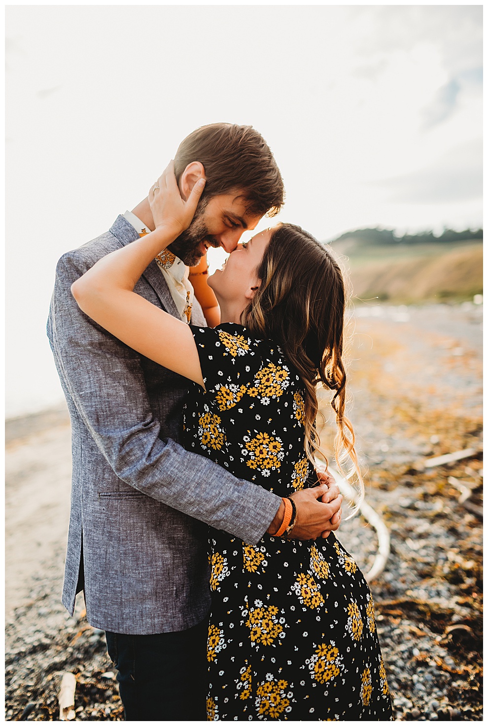 I met Jenna + Nabil on a quiet beach for their engagement session. I’m based in both Florida and Whidbey Island, Washington, which is north of Seattle. Anyone will tell you I’m a Florida girl at heart and love the sunshine and warmer temps. But Whidbey Island is so gorgeous, and it blows me away with its beauty every time. Jenna + Nabil are into adventure, the outdoors, and exploring, and are just a super fun couple. We talked about locations for their shoot and decided a Whidbey Island beach engagement session was the perfect fit for them!