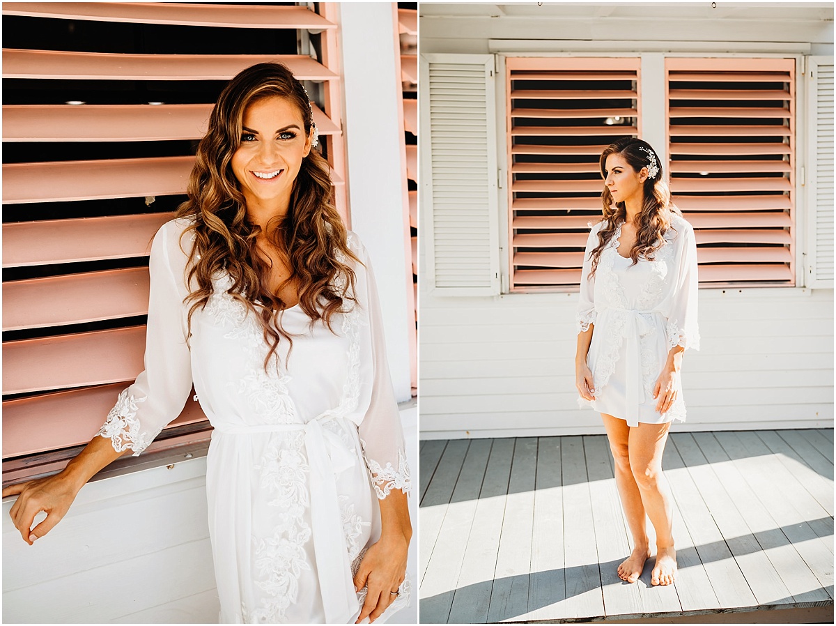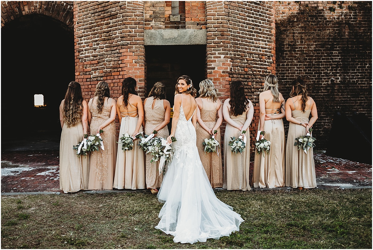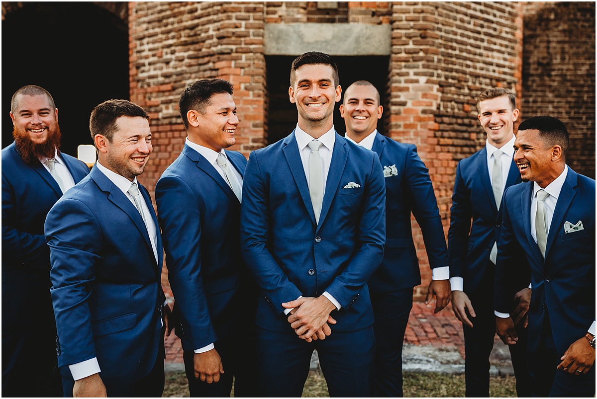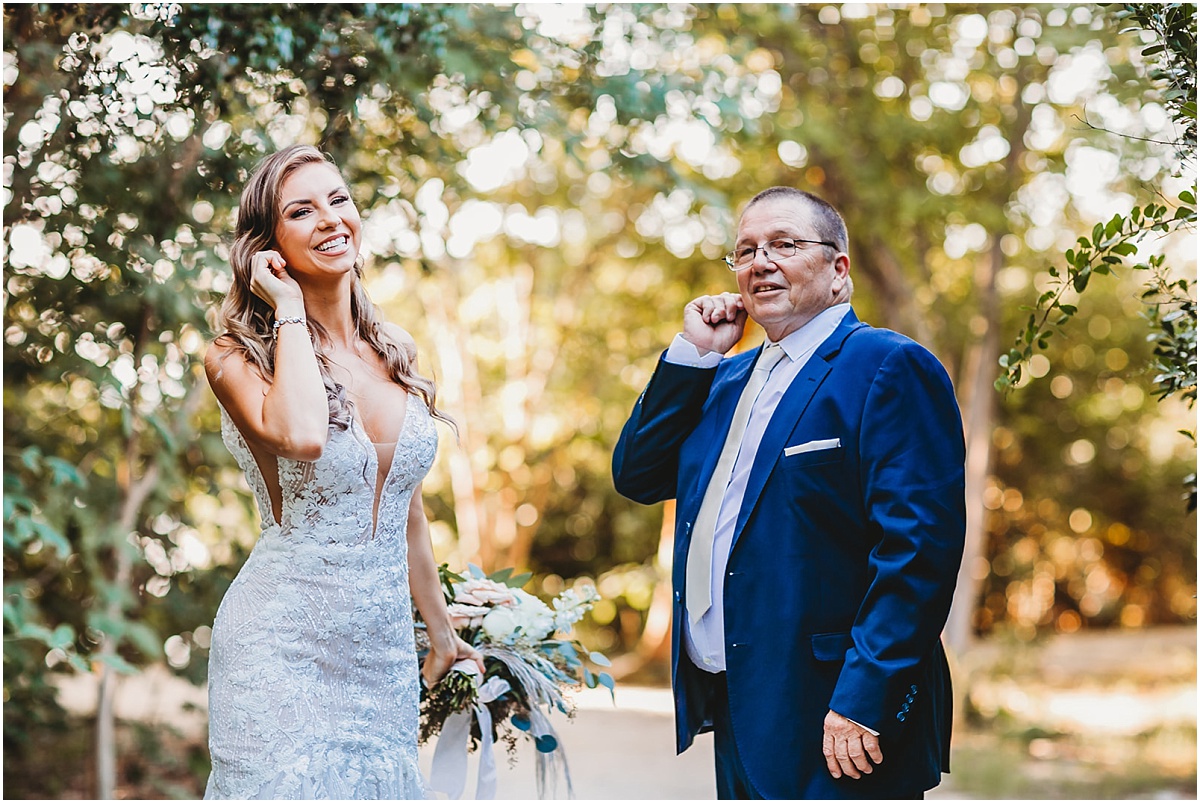 Anyway, now that you know some of the reality behind the scenes, let’s talk more about this storybook day! They got ready at a cute little key west Airbnb. Savanah had the cutest details from her invitations to her stunning jewelry. I mean she went all the way with every little detail, and I was just obsessed. After I ran over to the groom and got some photos of him and his guys getting ready. They were super chill and relaxed. Before Savanah and Will shared their first look Savanah had a first look with her dad. It was a super sweet moment. This took place at the fort at Fort Zachary Taylor. It’s also super historic as well. Will was waiting in this little nook at one of the forts when savannah arrived for their first look. After they met with their wedding party for some photos and celebration. And before you know it, we were headed out to their ceremony for their one-of-a-kind Hemmingway House Wedding.