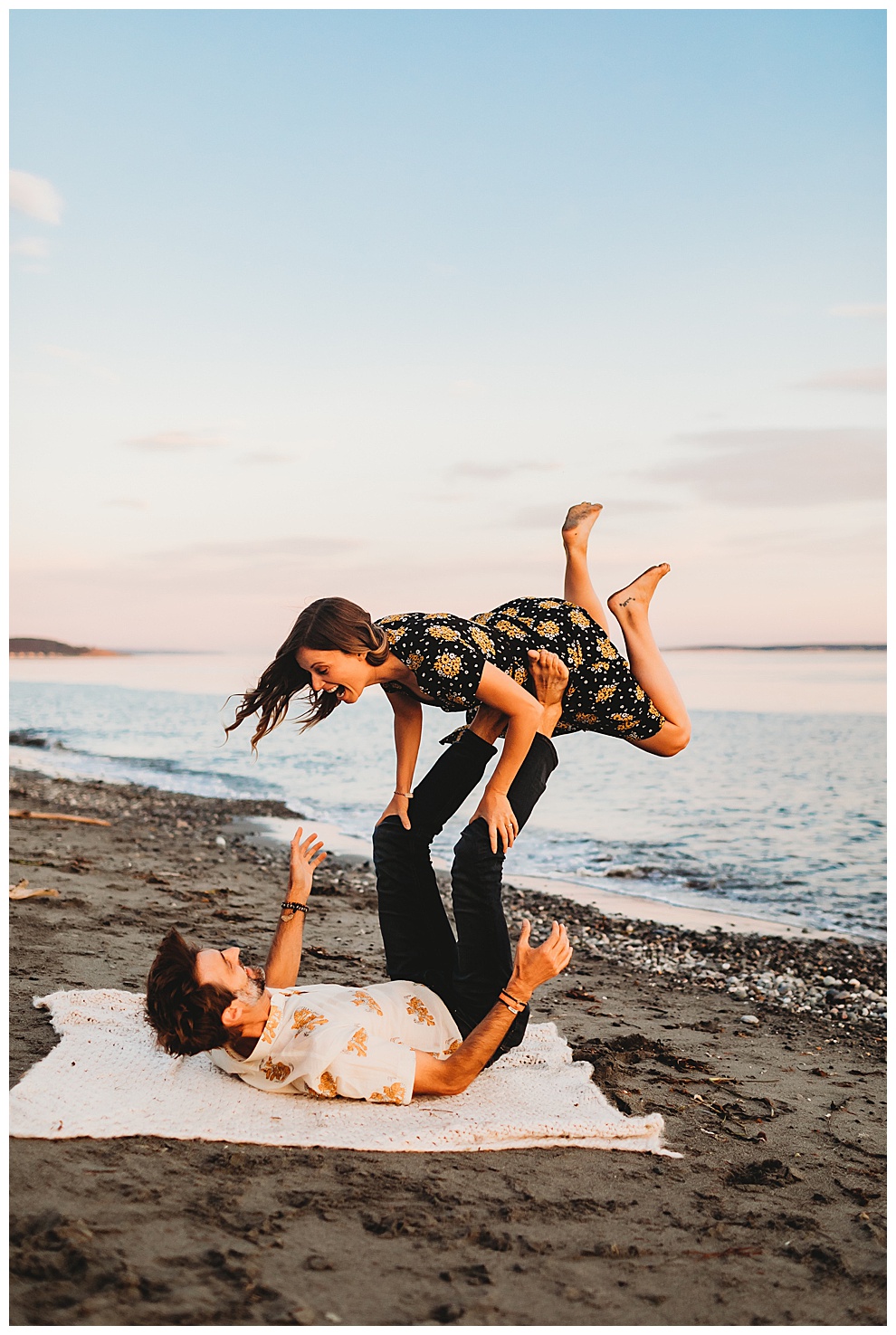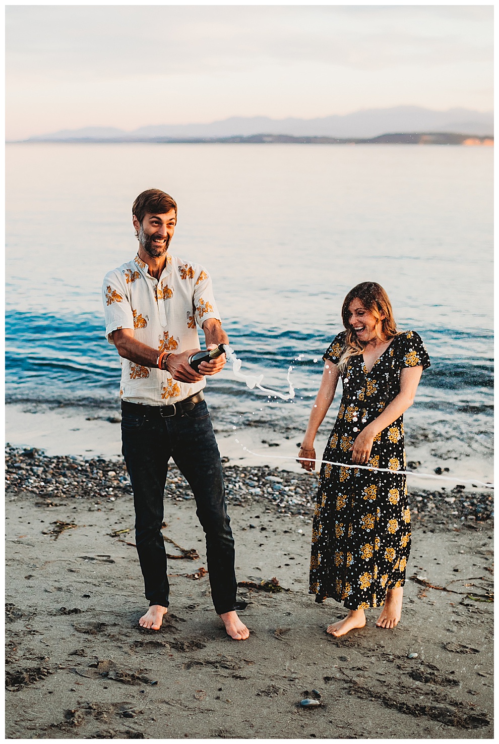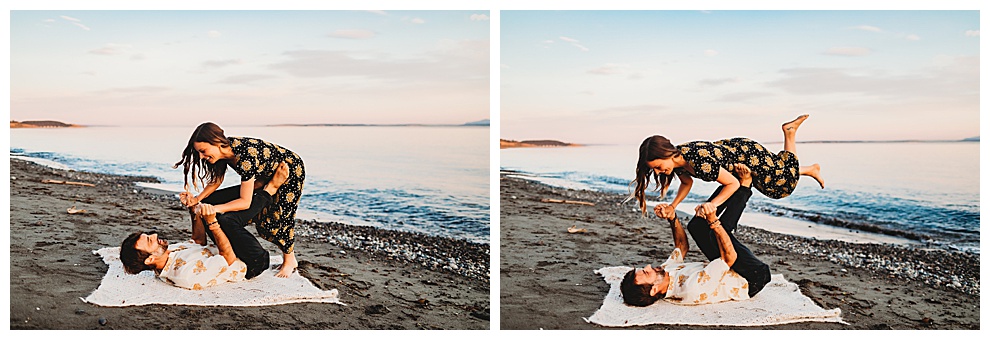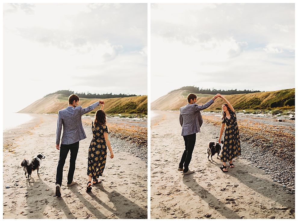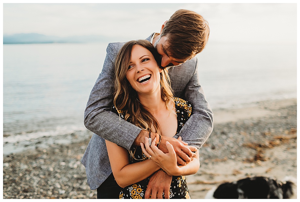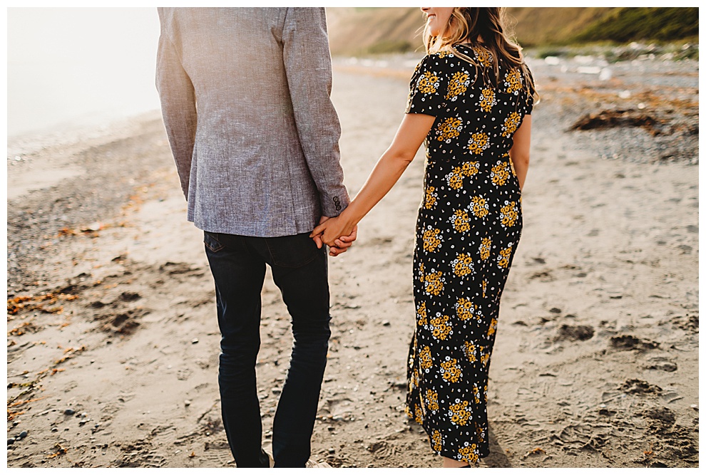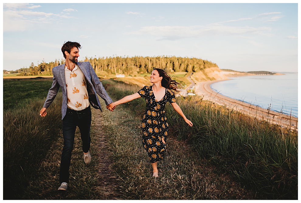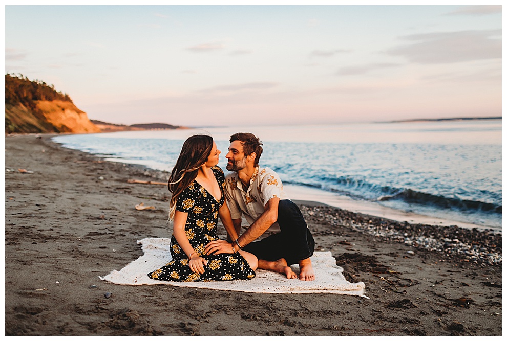 I met Jenna + Nabil on a quiet beach for their engagement session. I’m based in both Florida and Whidbey Island, Washington, which is north of Seattle. Anyone will tell you I’m a Florida girl at heart and love the sunshine and warmer temps. But Whidbey Island is so gorgeous, and it blows me away with its beauty every time. Jenna + Nabil are into adventure, the outdoors, and exploring, and are just a super fun couple. We talked about locations for their shoot and decided a Whidbey Island beach engagement session was the perfect fit for them!