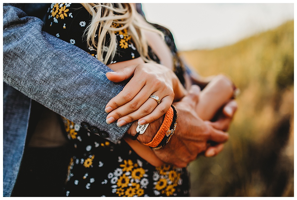 For their beach session, Nabil wore a blue jacket which he had specially made for him while they were traveling in India. It was on that same trip that he proposed to Jenna, and the ring he chose for her has a map of the world engraved on it. It’s such a unique and beautiful ring. It’s also so meaningful for them, their relationship, and their shared passions.