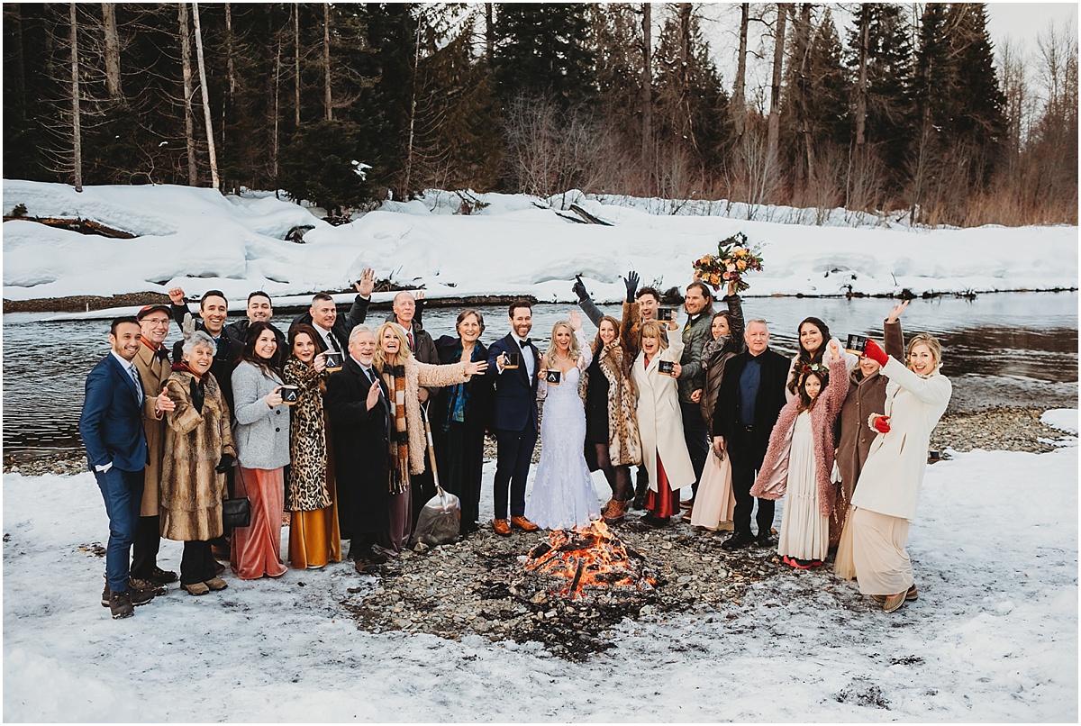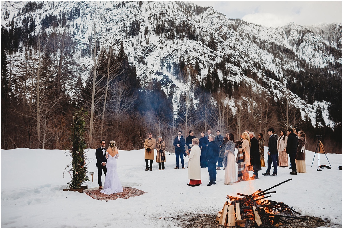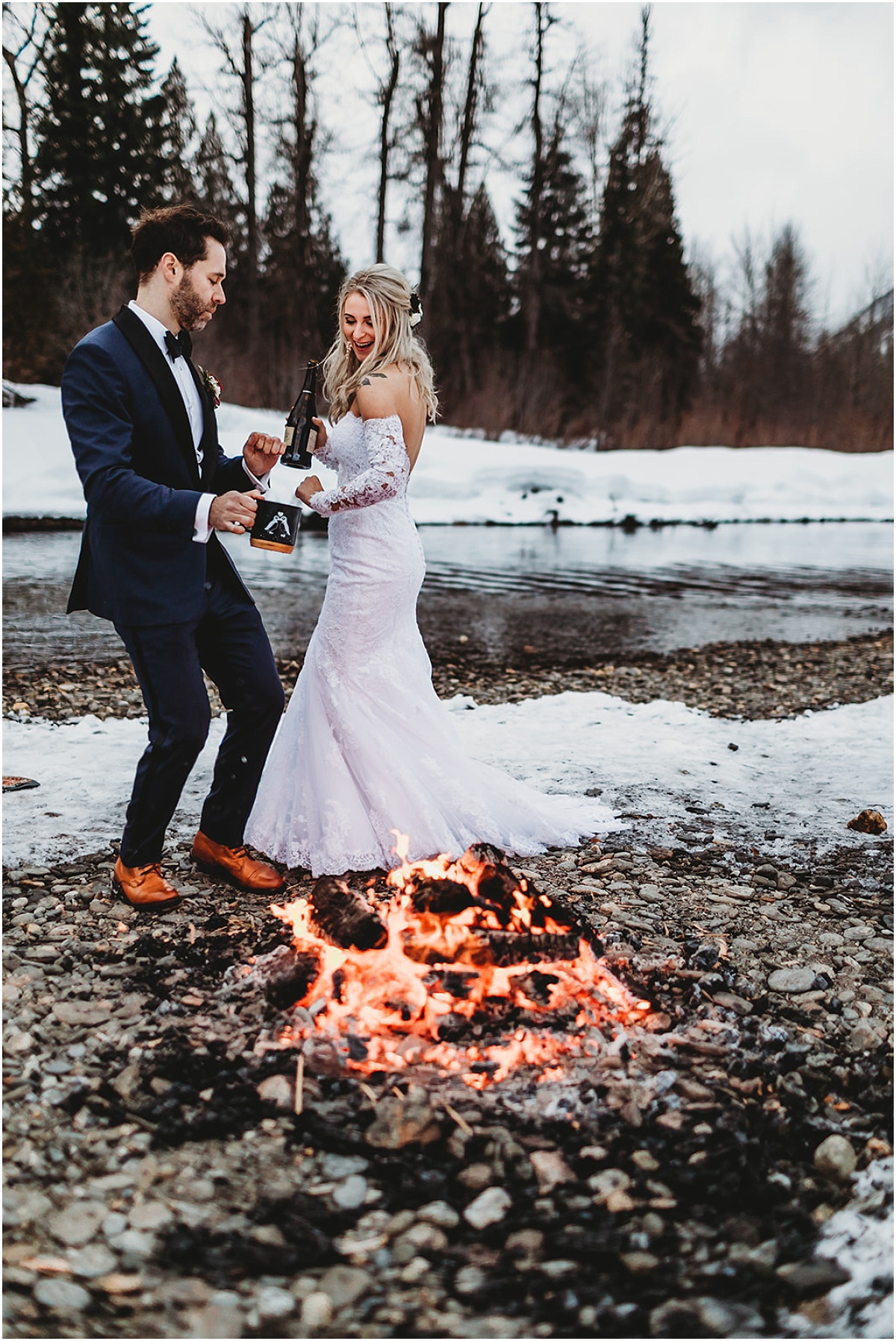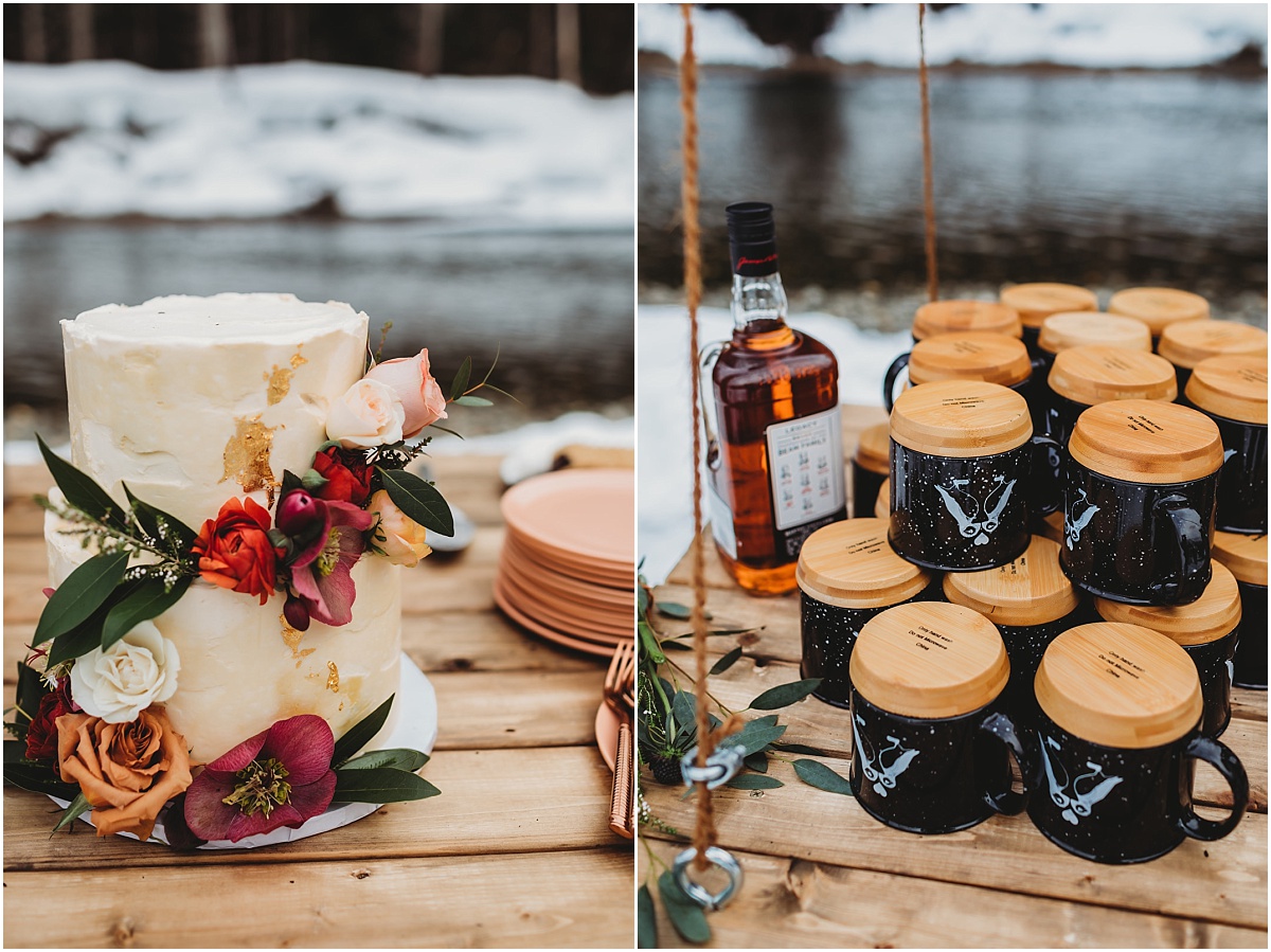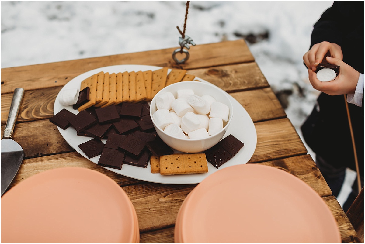 After the wedding ceremony, everyone had a special hot chocolate. It was a recipe that Becca and Patrick are obsessed with. There was whiskey as well as smores. It was just super fun with everyone huddled around the fire and taking in the beautiful winter views.