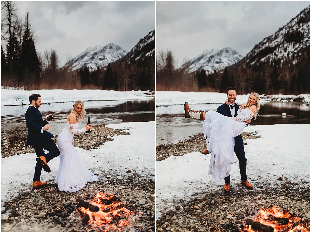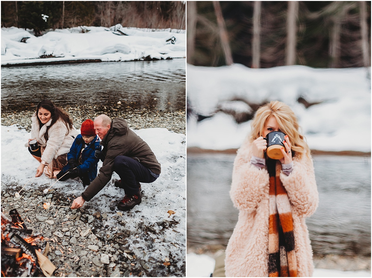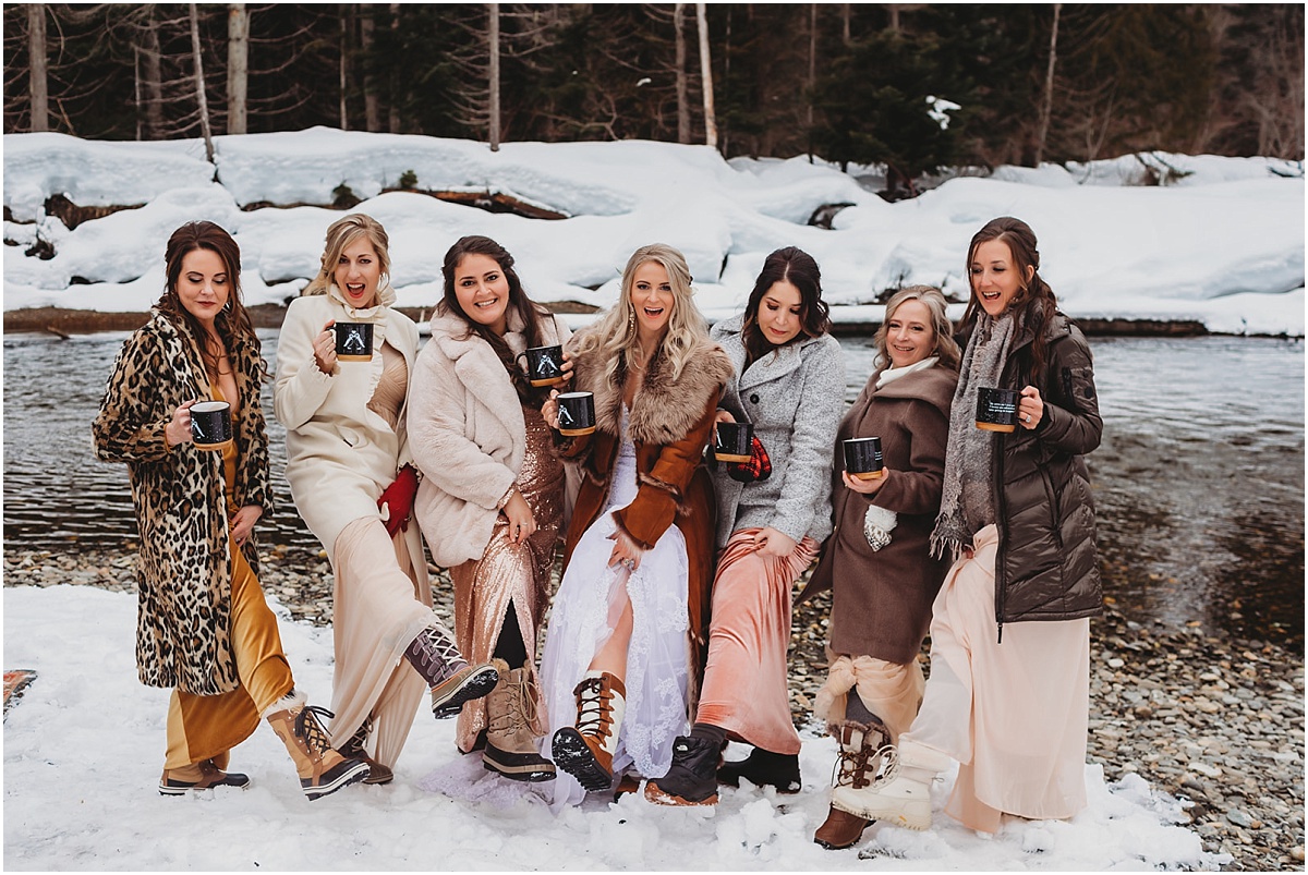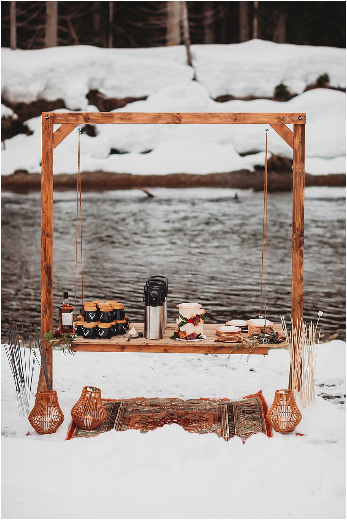 After the wedding ceremony, everyone had a special hot chocolate. It was a recipe that Becca and Patrick are obsessed with. There was whiskey as well as smores. It was just super fun with everyone huddled around the fire and taking in the beautiful winter views.