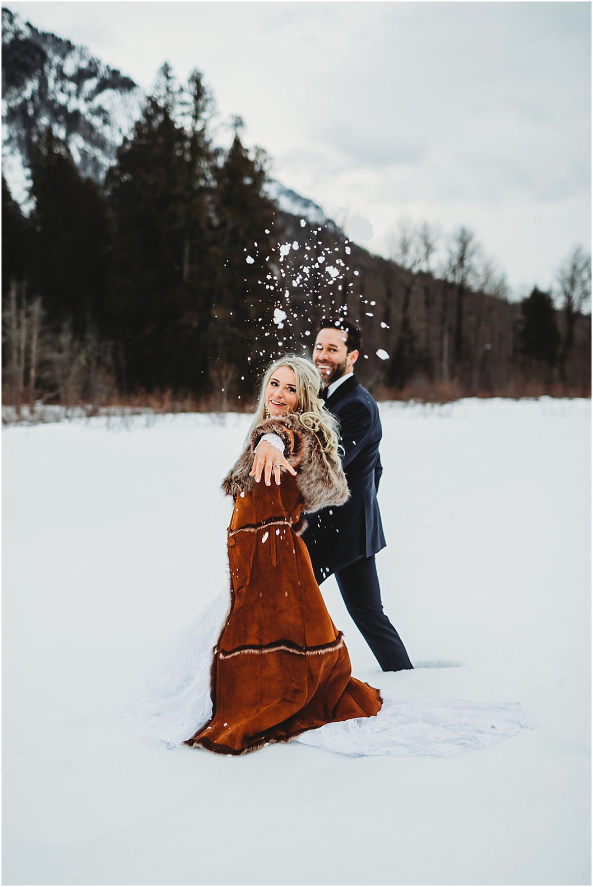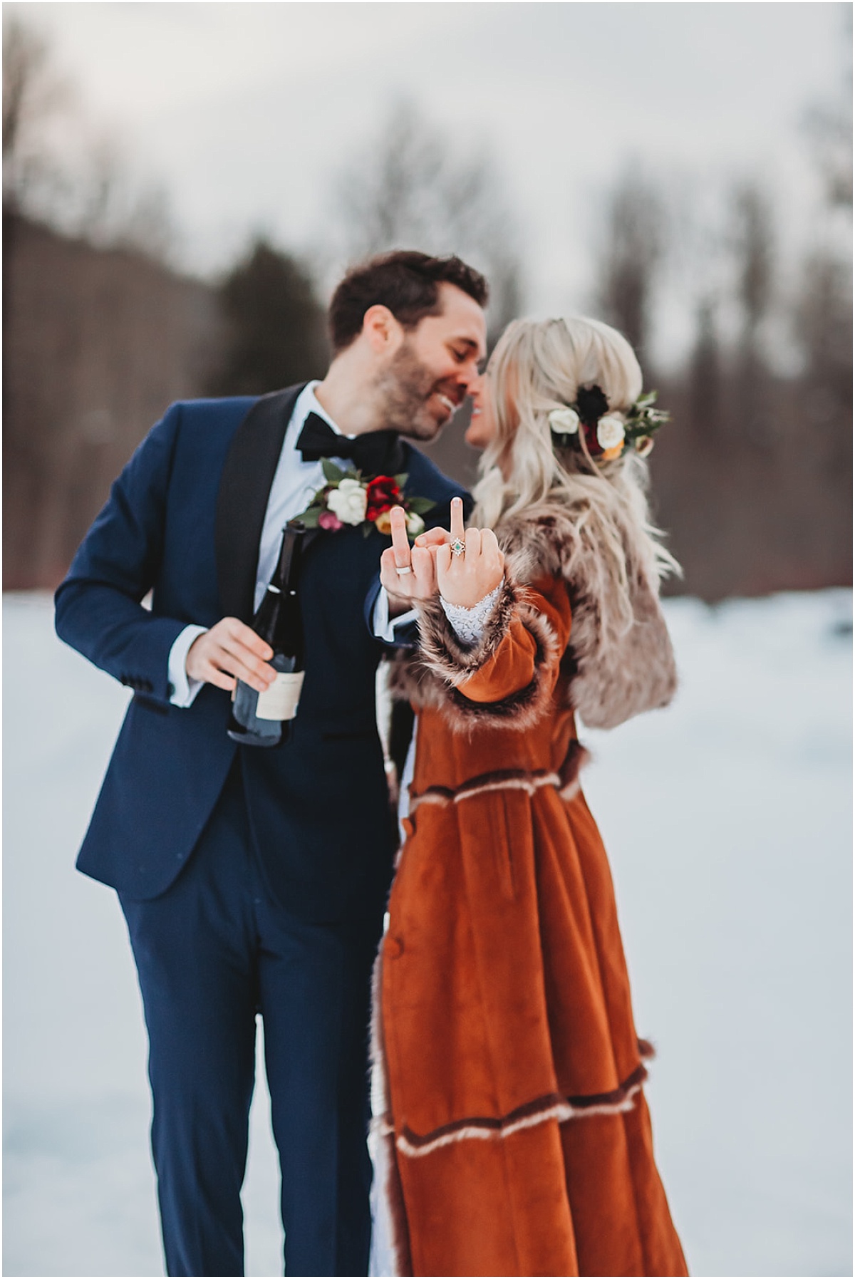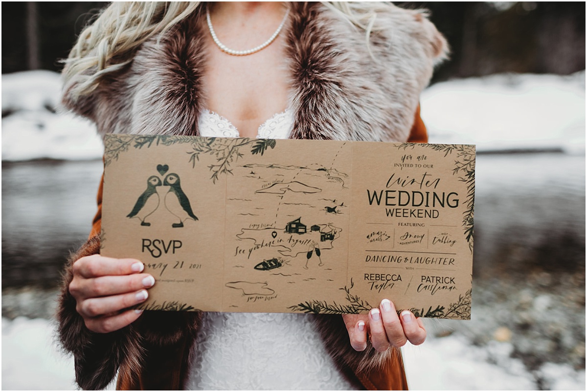 If you’re looking for a winter wedding that is full of adventure, snowy mountains, a weekend full of good food, and partying then you are about to be pinning this wedding on your Pinterest boards!